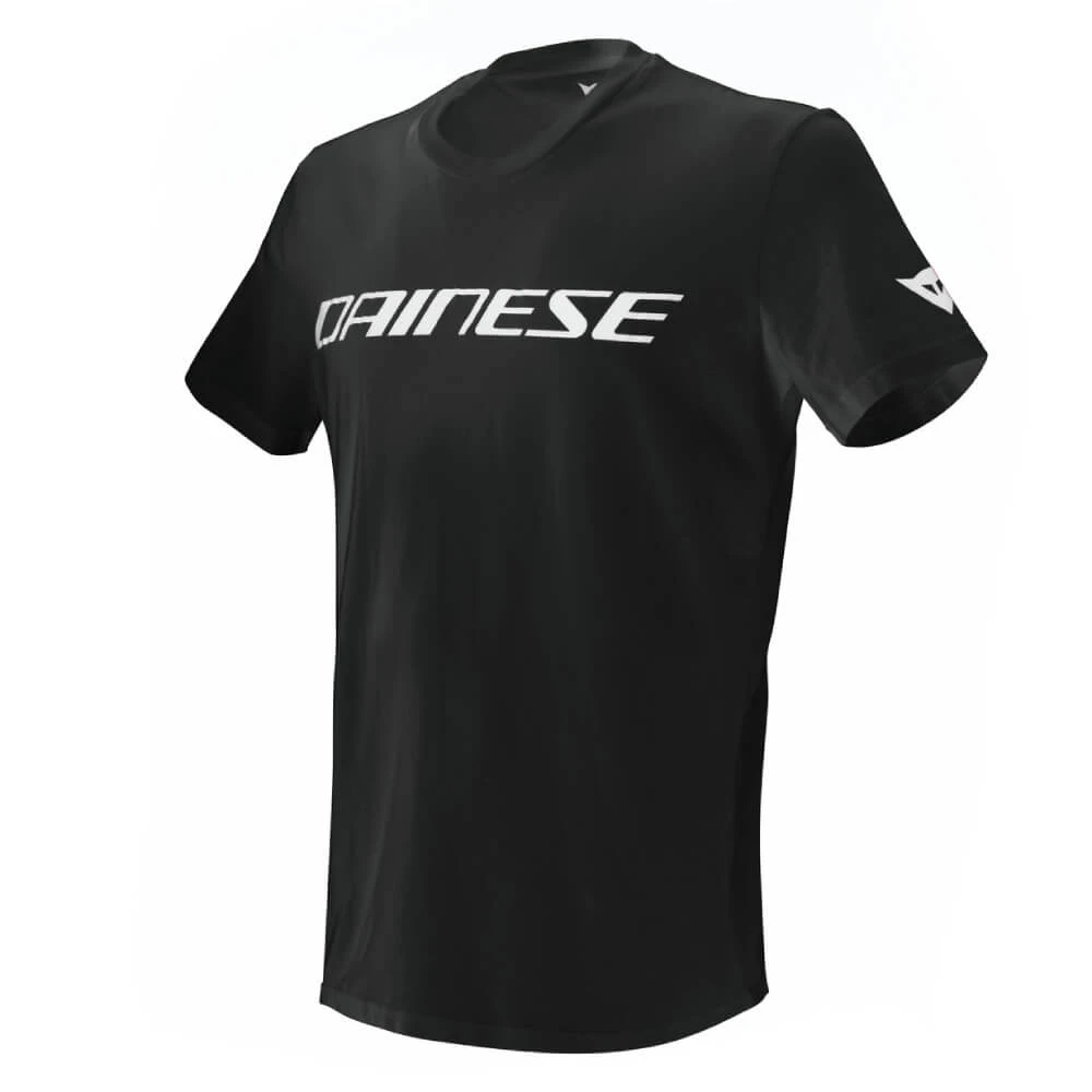 This Dainese logo T-Shirt showcases the brand name. Ideal for every day and casual use, it is crafted from comfortable, 100% cotton fabric. The t-shirt is black with a white logo and detailing.