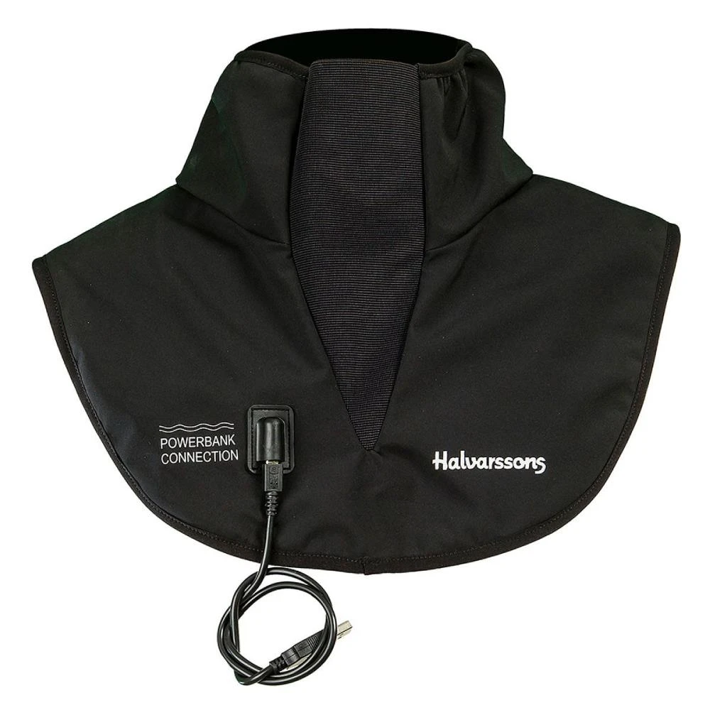 Heat in the neck collar is supplied through carbon fibres fed by a small power supply.