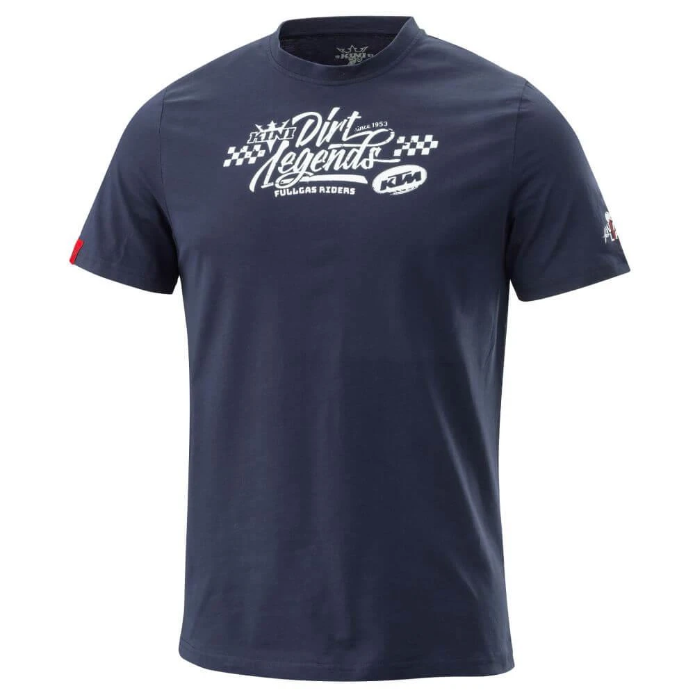 This Dark Navy KTM Dirt Script Tee from the KINI collection is crafted from 100% cotton, making it an ideal garment to demonstrate your passion for motorcycling. With a ‘Dirt Legends Fullgas Riders’ graphic on the front, KINI logo tab on the right sleeve, and the Wings For Life logo on the left, you can simultaneously show your enthusiasm and support the Wings For Life Spinal Cord Research Foundation.