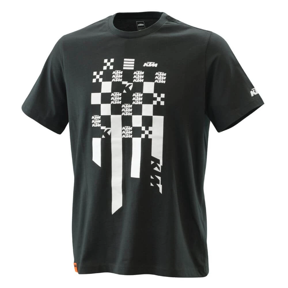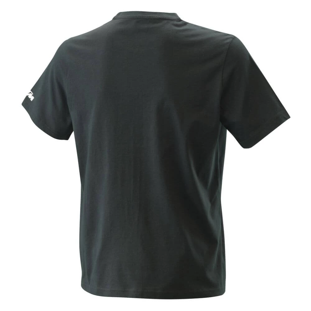 Genuine black KTM t-shirt with white printed logo design and a crew neck.