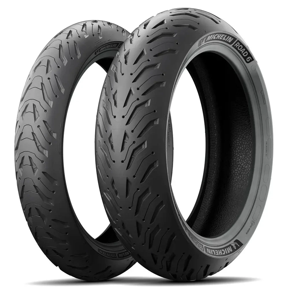 This tyre comes with Silica technology which improves grip in cooler temperatures and on wet roads, without compromising tread life. Off-road it ensures the durability of tread blocks. The Road 6 tyres come with Michelins Water Evergrip technology which is similar to the Water Sipe and Water Brake technology but is even more efficient, the sipes evolve over time and miles to give ever wider grooves, increasing the groove ratio to preserve the capacity of the tire to store and evacuate water.
