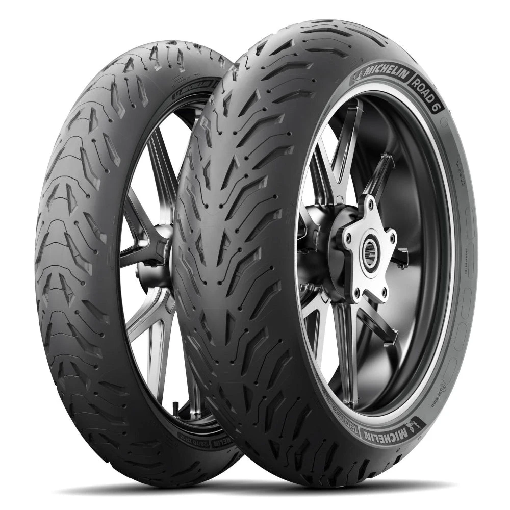 The Michelin Road 6 Motorcycle Tyre is the new version of the popular Michelin Road tyre. The Michelin Road 6 benefits from 2 decades of constant innovation and improvement with the highest level of expertise. This tyre offers 15% more wet grip than the Road 5 thanks to its 100% silica technology and a brand new tread pattern. By integrating a high percentage of silica into the tread rubber, Michelin has succeeded in pushing the limits of rolling resistance to save fuel, without compromising tyre longevity. The new high tech compound featured on these tyres increases the longevity by 10%.