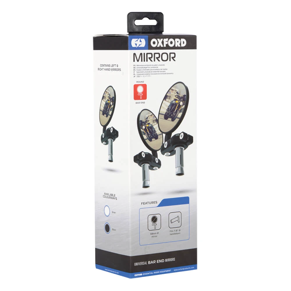 The Oxford Bar End Mirrors in Black are a set of two Bar End Mirrors engineered to fit 7/8 (22.2mm) standard bars.