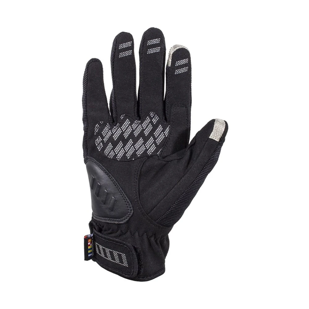 Constructed of elastic Cordura fabric, these mesh Rukka gloves are breathable to allow hot air to be exhausted while intaking cool air to keep your hands comfortable all ride long. The palm and fingertips are lined with faux leather for increased durability and a digital print for grip.