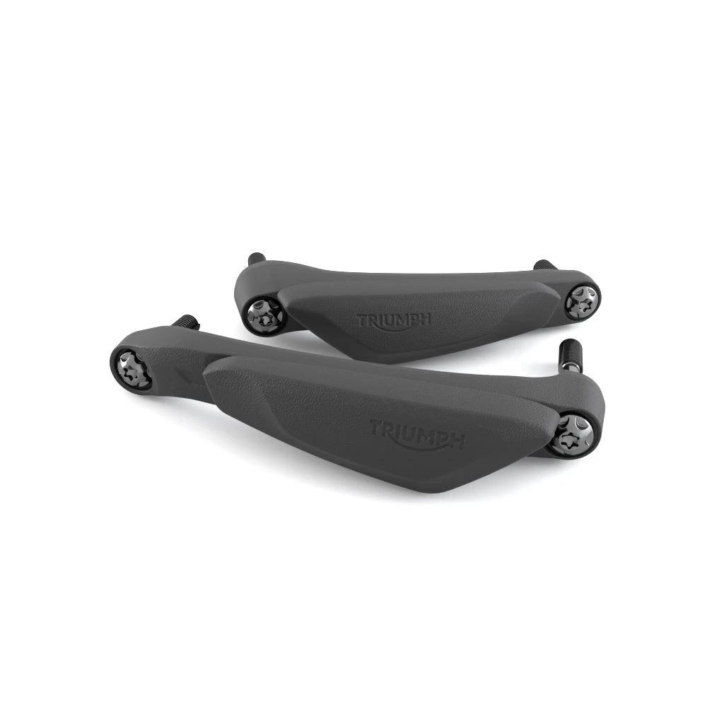 Bespoke frame protectors designed specifically for the Speed Triple offer additional protection in the event of a fall. Manufactured from durable glass filled nylon with subtle embossed Triumph branding.