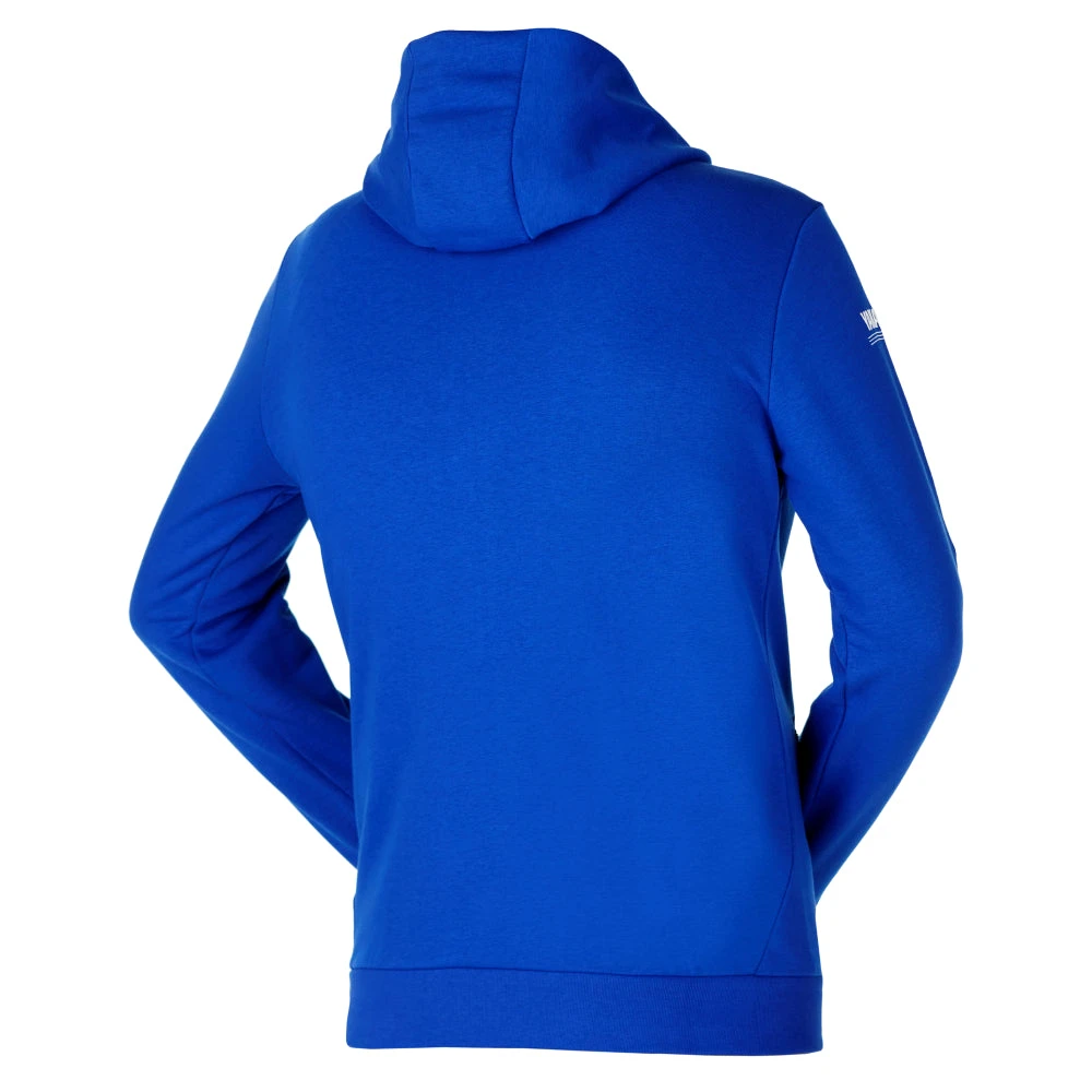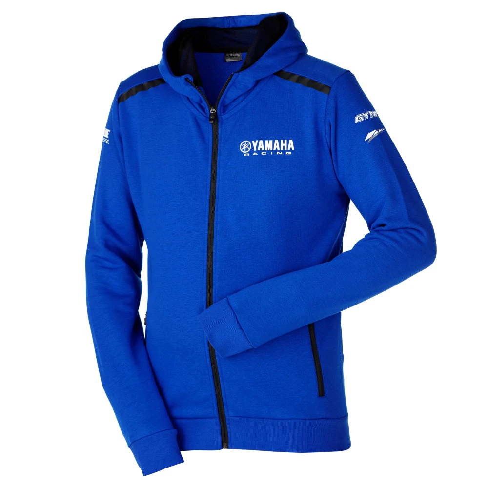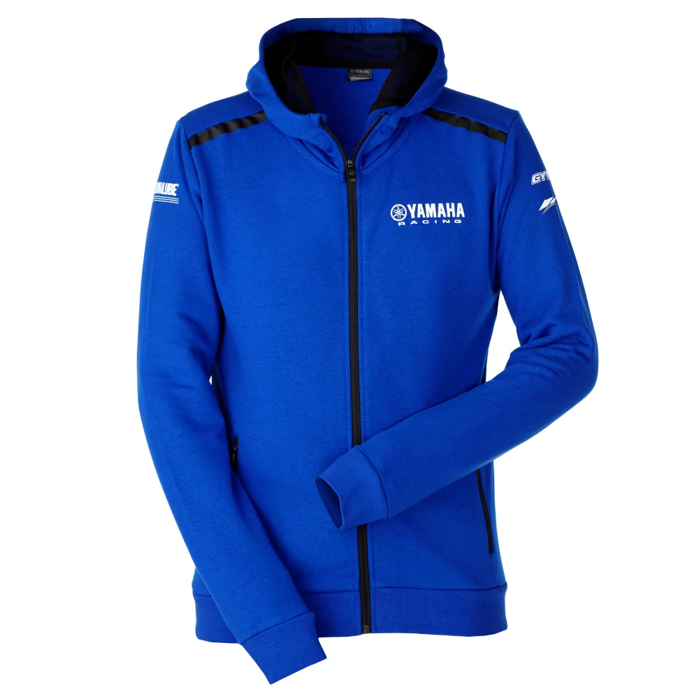 Genuine Yamaha “paddock blue” soft hoodie with lined hood to keep you warm. Has 2 zip pockets. White font on each arm and on chest.